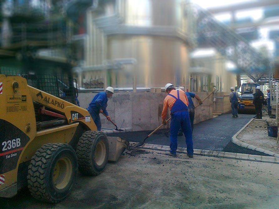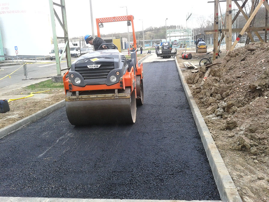 IIgény esetén az útpálya szerkezetbe fokozott igénybevételre tervezett aszfaltot, vagy ipari területeken szikramentes aszfalt keveréket építünk be.