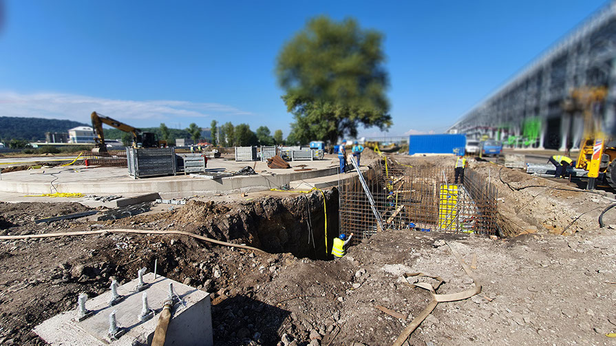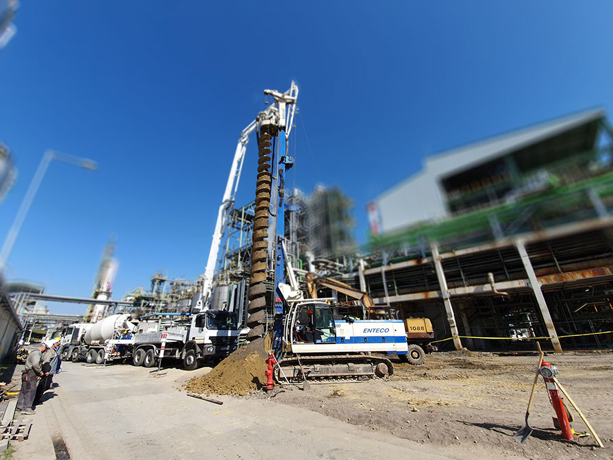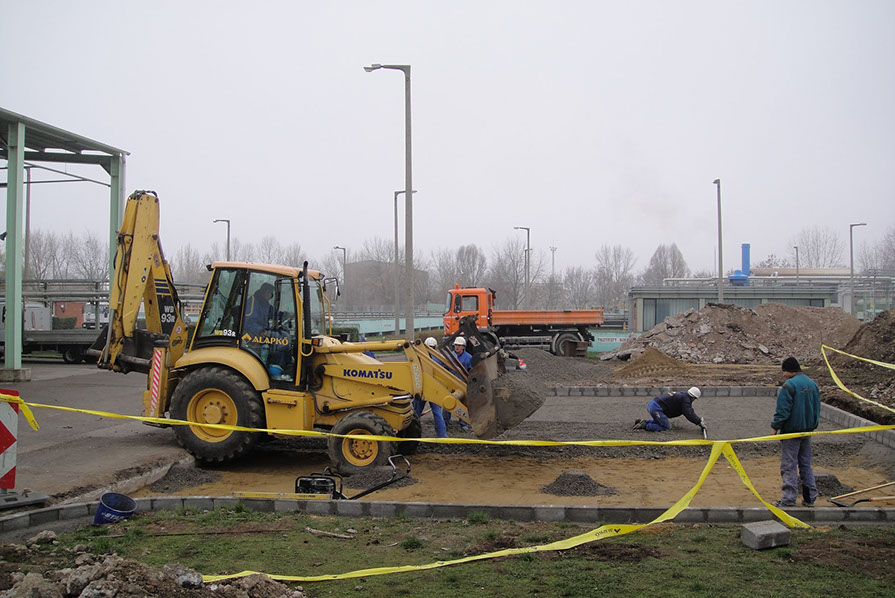 A közlekedés elősegítésében -utak, járdák, rakodóterek-, a vízgazdálkodásban -ivó és szennyvíz hálózatok kiépítése, csapadékvíz elvezetés, szikkasztók, ülepítők alapjai-, a magas építmények, szerkezetek biztonságos és korszerű alapozása -sáv és lemez alapok- kivitelezései.